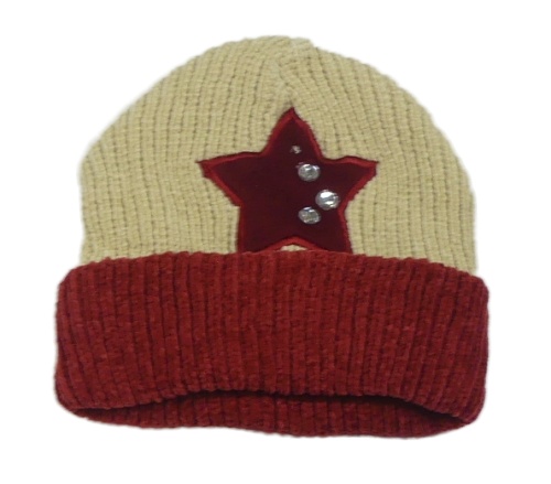 Béžovo-vínová pletená čepice s hvězdou s kamínky