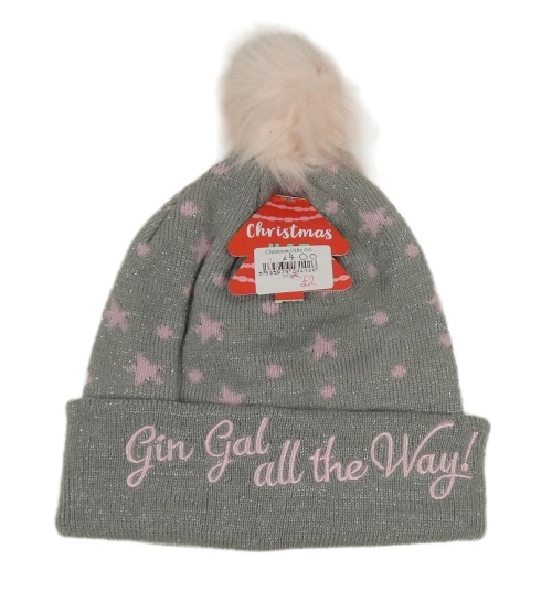Nové - Šedá třpytivá čepice s nápisem, hvězdami a bambulí