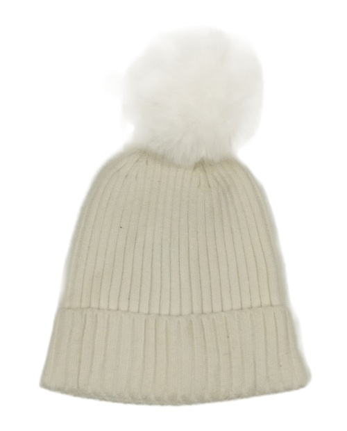 Bílá žebrovaná pletená čepice s bambulí George