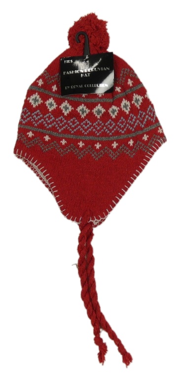 Nové - Červená vzorovaná pletená čepice s bambulí