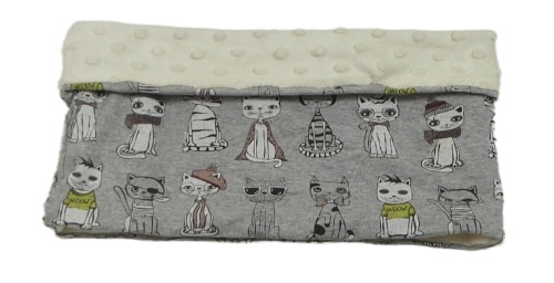 Šedý bavlněný zateplený nákrčník s kočkami