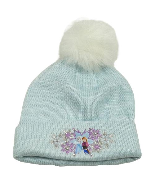 Světlemodrá melírovaná pletená čepice s Frozen a bambulí Disney