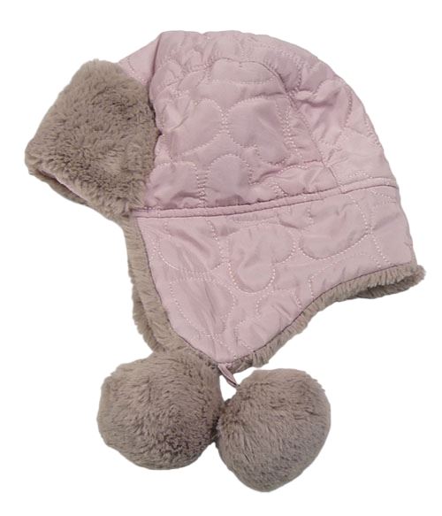 Pudrová šusťáková zateplená beranice s prošívanými srdíčky a kožešinou a bambulemi Tu