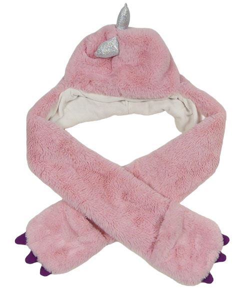 Růžová kožešinová podšitá čepice se šálou - dinosaurus Lily & Dan