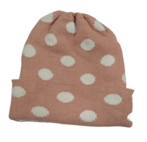 Starorůžovo-bílá puntíkatá úpletová čepice