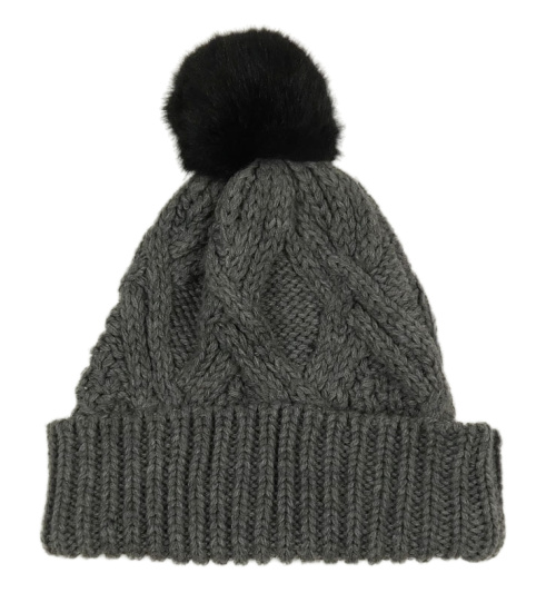 Šedá melírovaná vzorovaná pletená čepice s bambulí Tchibo