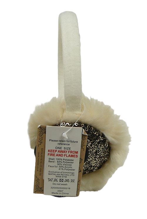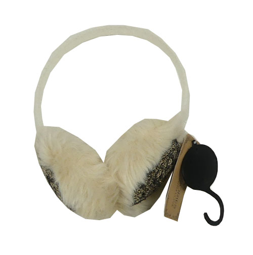 Nové - Smetanové chlupaté klapky na uši s flitry