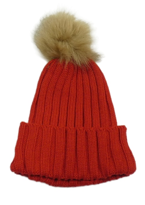 Červená pletená čepice s bambulí