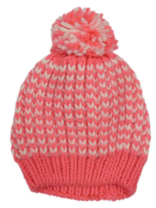 Neonově růžovo-bílá melírovaná čepice s bambulí Peacocks