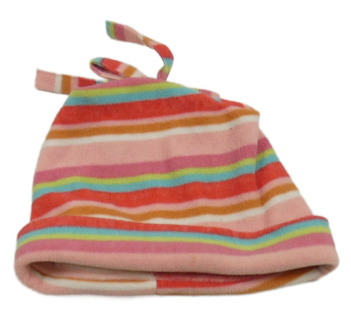 Modro-růžovo-bílá pruhovaná fleecová čepice s třásněmi