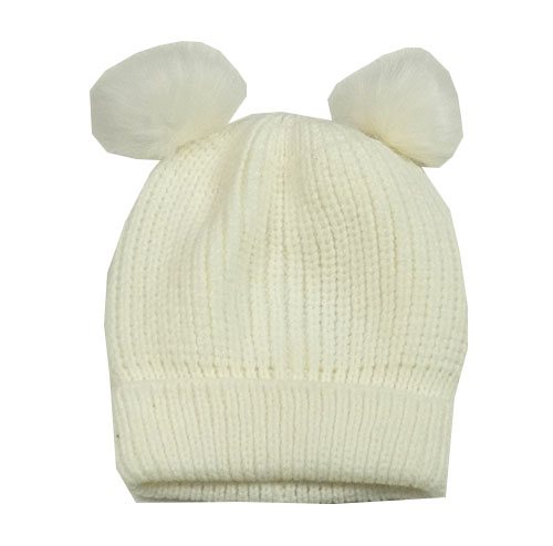 Smetanová pletená čepice s bambulemi