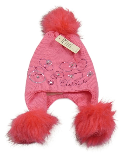 Nové - růžová pletená čepice s kamínky a pecičkami a bambulemi