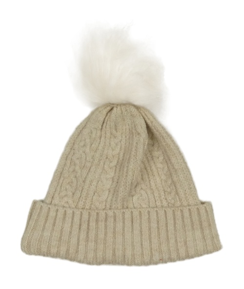 Světlebéžová melírovaná žebrovaná vzorovaná čepice s bambulí