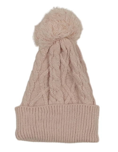 Světlerůžová vzorovaná třpytivá pletená čepice s bambulí
