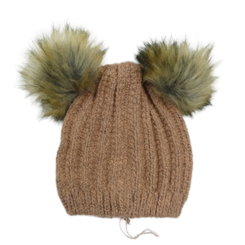 Pudrovo-šedá melírovaná čepice s bambulemi PRIMARK