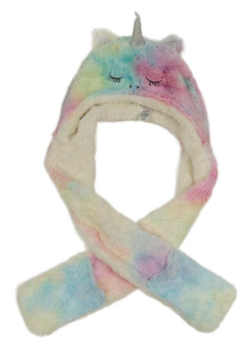 Duhová chlupatá čepice se šálou - jednorožec F&F