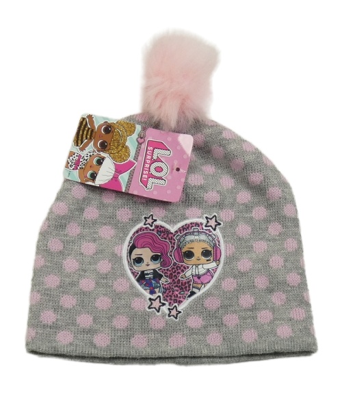 Nové - šedo-růžová puntíkatá melírovaná čepice s L.O.L. SURPRISE! a bambulí