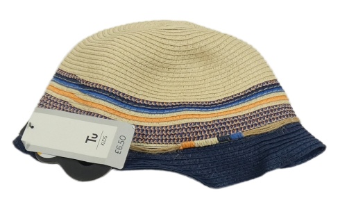 Nové - béžovo-tmavomodrý slaměný klobouk s pruhy Tu