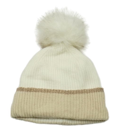 Smetanovo-béžová pletená zateplená čepice s bambulí