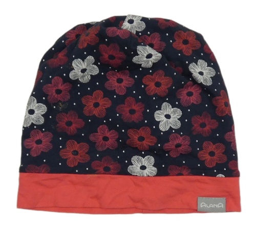 Tmavomodro-růžová květovaná elastická čepice