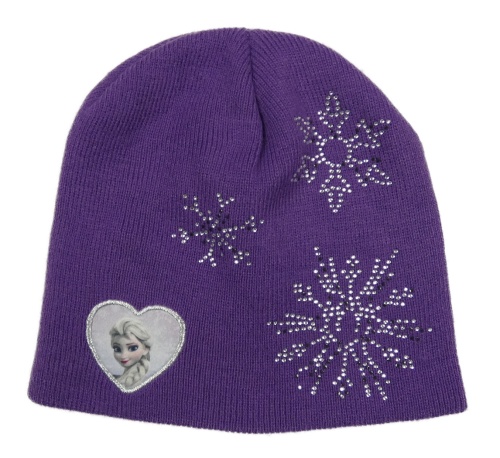 Fialová čepice s Elsou a vločkami z kamínků