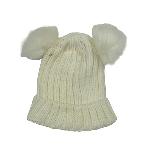 Smetanová žebrovaná pletená čepice s bambulemi Primark