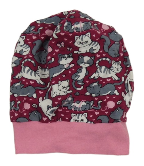 Vínovo-růžová čepice s kočičkami