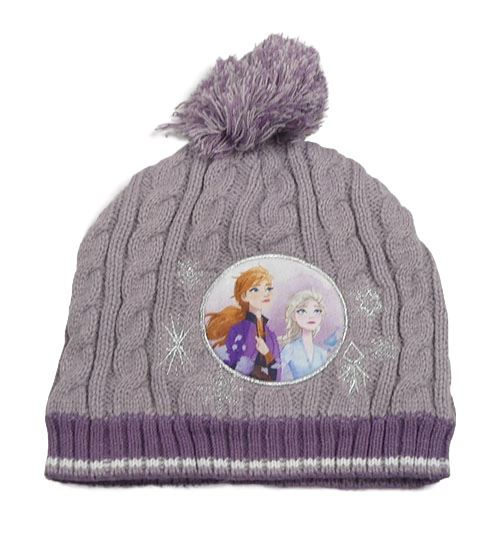 Starofialovo-tmavofialová vzorovaná žebrovaná čepice s Frozen a bambulí Disney