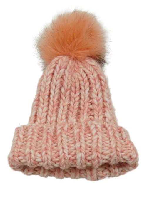 Růžovo-světlerůžová melírovaná žebrovaná pletená čepice s bambulí PRIMARK