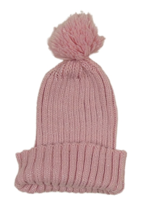 Růžová třpytivá žebrovaná čepice s bambulí
