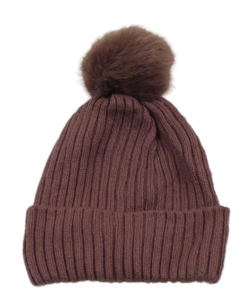 Vínová pletená čepice s bambulí