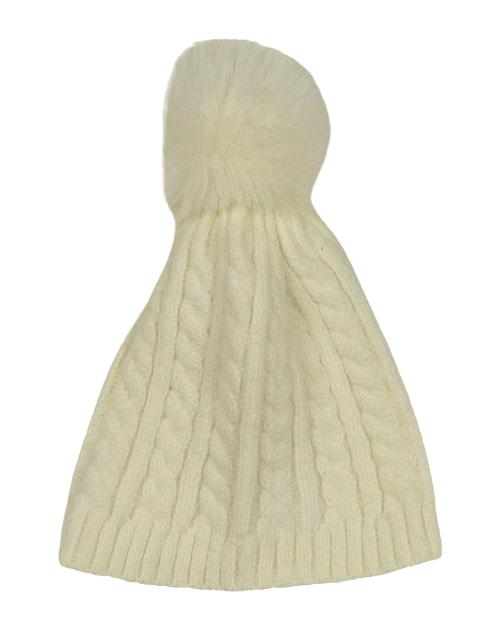 Smetanová pletená čepice s bambulí