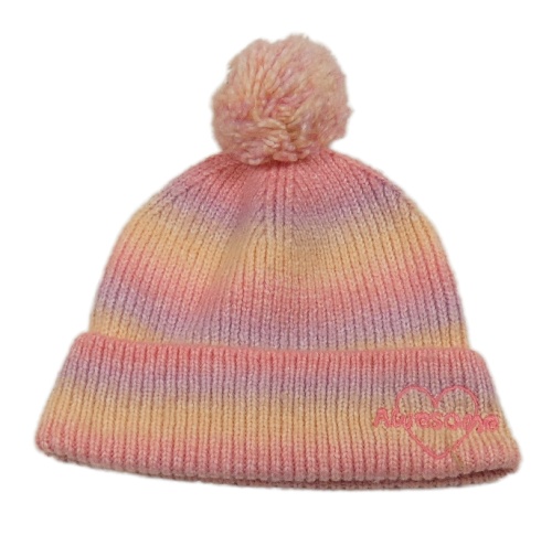 Růžovo-lila-oranžová ombré čepice s bambulí a nápisem