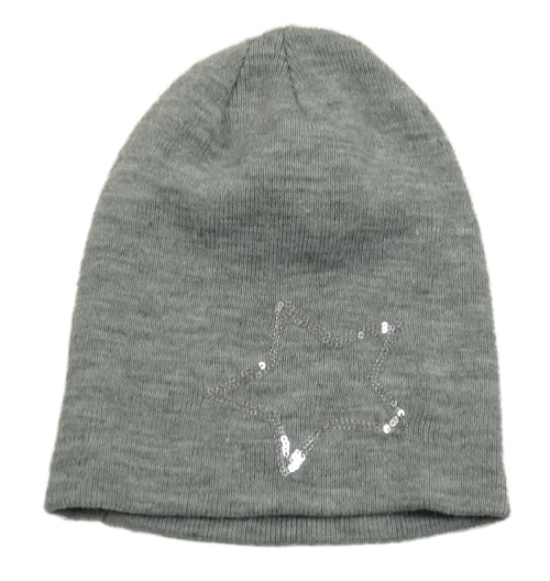 Šedá čepice s hvězdou z flitrů