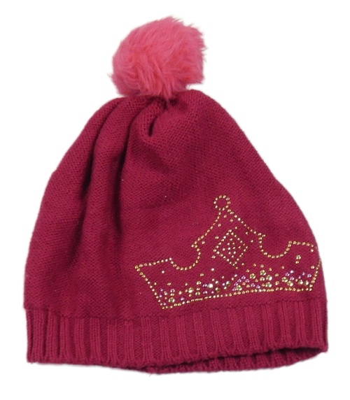 Fuchsiová pletená čepice s korunkou z kamínků a bambulí Disney