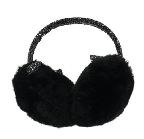 Černé kožešinové třpytivé klapky na uši