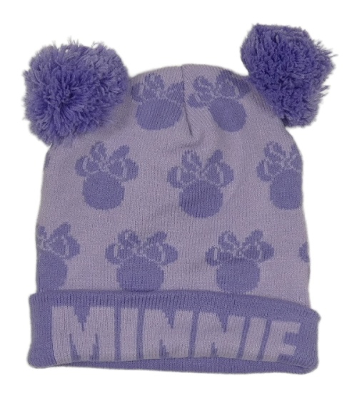Fialová pletená čepice s Minnie a bambulemi
