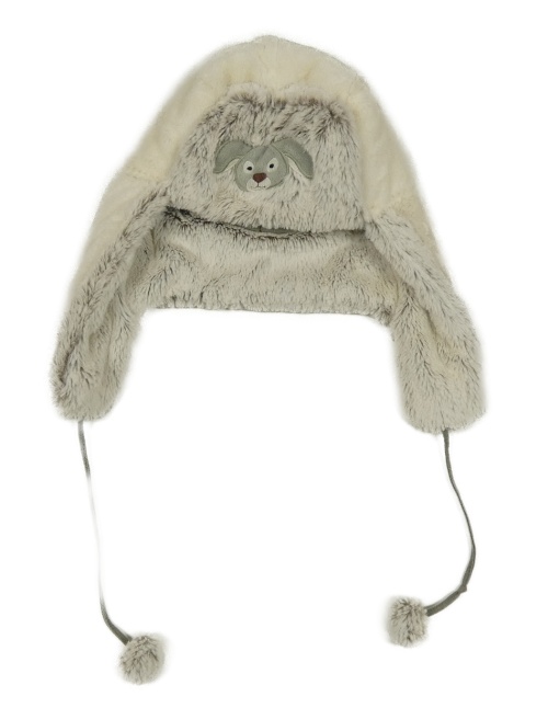 Smetanovo-šedá plyšová zateplená beranice s pejskem