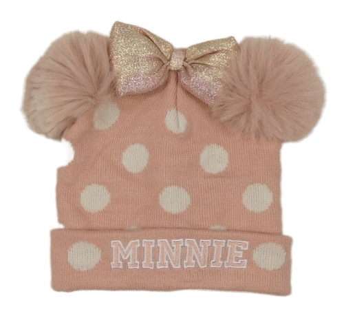 Růžovo-bílá puntíkatá čepice s bambulemi a mašlí Primark
