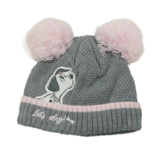 Šedá pletená podšitá čepice s dalmatinem a růžovými bambulkami Nutmeg