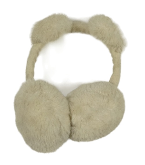Světlebéžové chlupaté klapky na uši s oušky