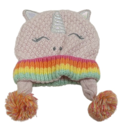 Růžovo-barevná pletená čepice - jednorožcem Tu