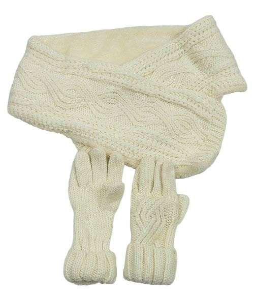 2set - Smetanová pletená podšitá šála + pletené prstové rukavice