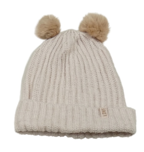 Světlerůžová žebrovaná čepice s nášivkou a bambulemi H&M