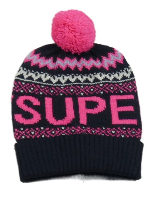 Tmavomodro-neonově růžová vzorovaná čepice s bambulí Superdry