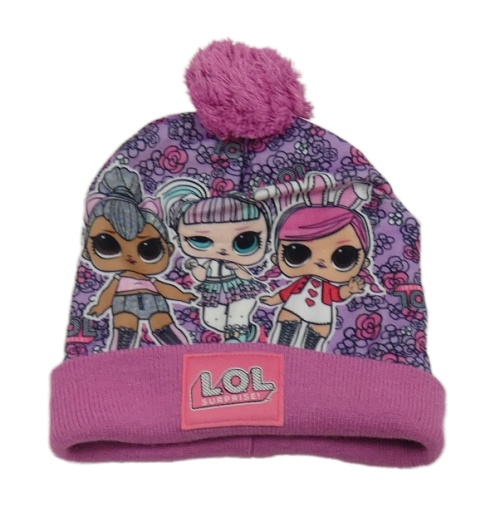 Fialovo-růžová vzorovaná čepice s L.O.L. a bambulí