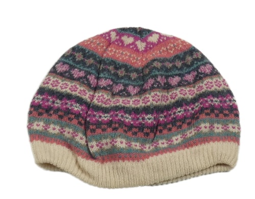 Smetanovo-růžovo-tmavošedo-malinová vzorovaná vlněná čepice Accessorize