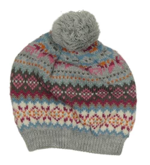 Šedo-barevná vzorovaná čepice s bambulí