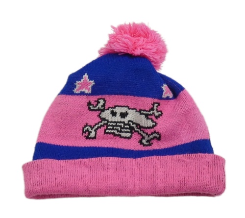 Neonově růžovo-modrá čepice s motorkou a bambulí