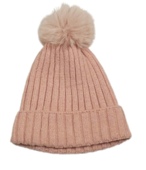 Světlerůžová třpytivá pletená žebrovaná čepice s bambulí Primark